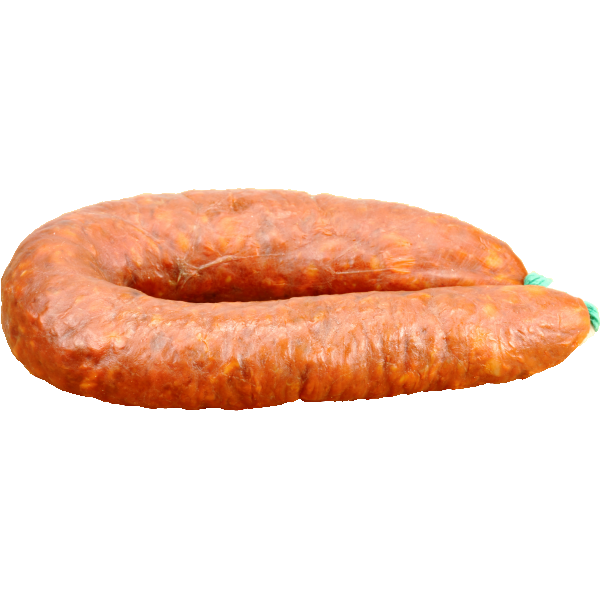 Ingredients : pork meat, pork fat, paprika, salt, garlic, dextrine, dextrose, lactose, milk protein, milk powder, sugar, pepper, rosemary, natural gut, starter, acidity corrector (E331), stabilizing agents (E-450, E 452, E451); preservatives (E250), antioxidant (E301)