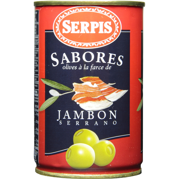 Ingredients : MANZANILLA GREEN OLIVE, STUFFING 6% (CURED HAM, WATER, STABILIZER: SODIUM ALGINATE, SCENTS), SALT, FLAVOUR ENHANCER: MONOSODIUM GLUTAMATE, ACIDULANT: CITRIC ACID, ANTIOXIDANT: L-ASCORBIC ACID. PASTEURIZED